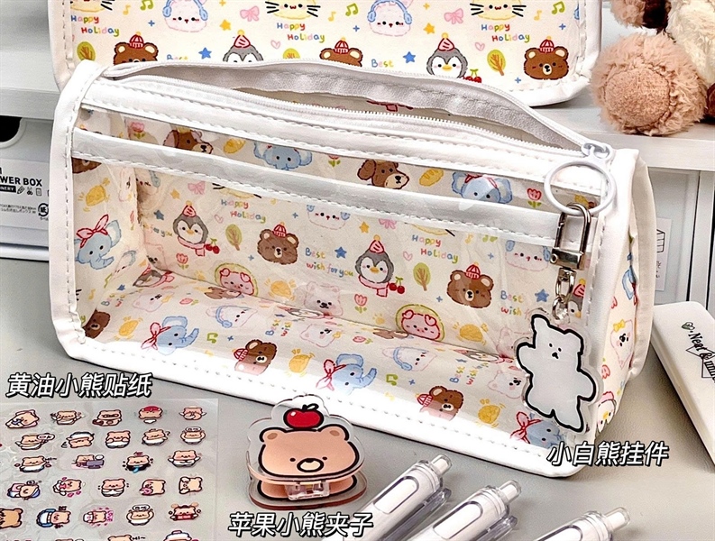 Túi bút tam giác nhựa trong in một mặt động vật Best wish for you, SP2170